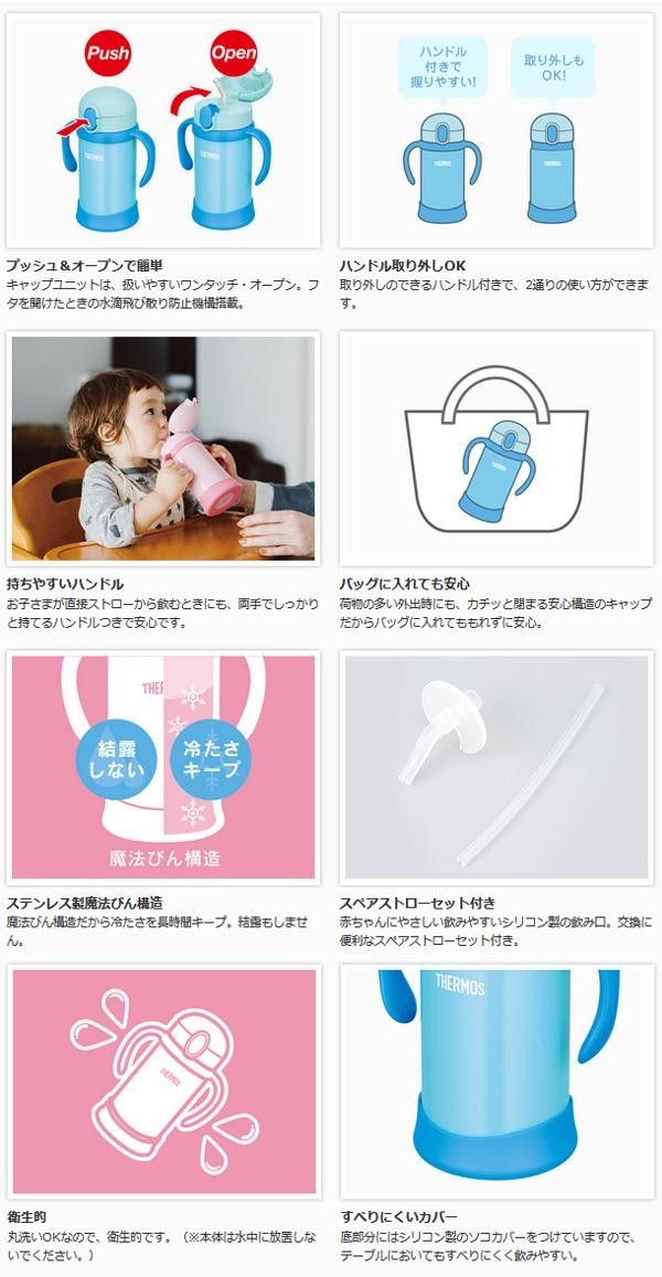 保冷専用のストローマグは、魔法びん構造だから冷たさをキープ。カチッと閉まる漏れないキャップや、すべりにくいソコカバーなど使いやすさを徹底しました。交換用ストローセットも付属しています。350mlの大容量タイプ。 |