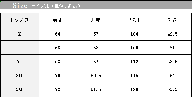 【3XL】バスト約120cm 丈約72cm 肩幅約61.5cm 袖丈約55.5cm