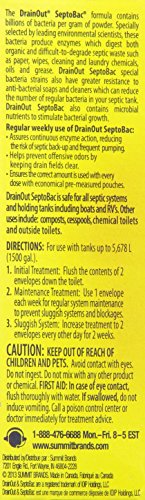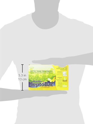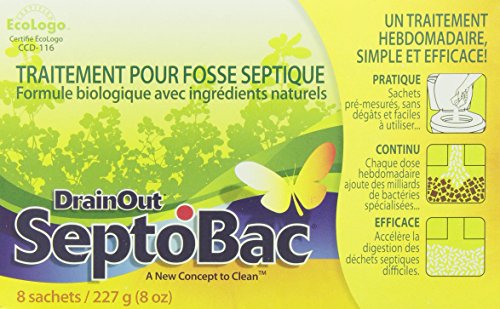 -. Brand : DrainOut -. Feature : A weekly process as easy as one-two-trouble free! / Organic formula with natural ingredients / Contains billions of bacteria per gram of powder / These bacteria produce enzymes which digest both organic & difficult-to-degrade septic waste / Special bacteria strands also have greater resistance to anti-bacterial soaps & cleaners which can reduce the number of regular bacteria in your septic tank -. Label : Drain Out -. Manufacturer : Drain Out -. Model : N/A -. ProductGroup : Kitchen -. ProductTypeName : KITCHEN -. Publisher : Drain Out -. Studio : Drain Out -. Title : DRAIN OUT SEPTOBAC SEPTIC TANK TREATMENT