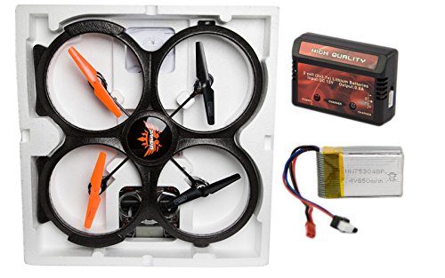 - Feature : Huge size (20.5 x 20.5 in) - impressive performance / Includes build in onboard digital camera / 6 axis gyro (3 axis gyro + 3 axis accelerometer) / 7.4V 850mAh LiPo Battery / High quality 2.4GHZ transmitter included