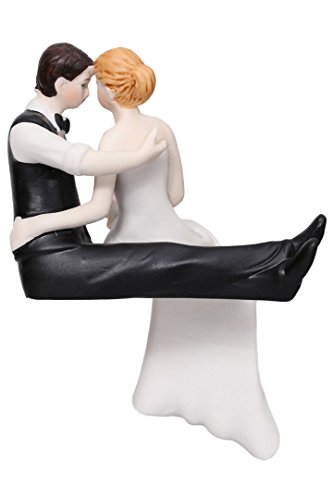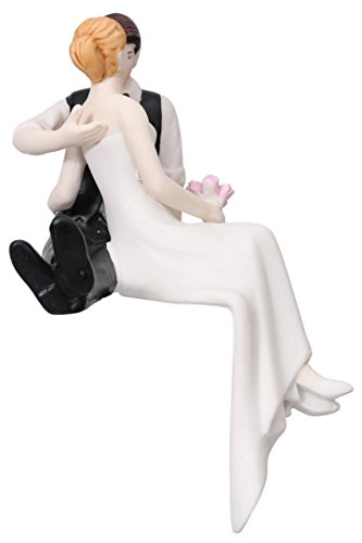 Couple Sitting on Edge Hand Painted Porcelain Bride Groom Cake Topper