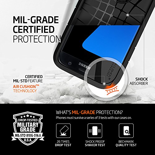 - Feature : Defined buttons and raised lip offer button and screen protection / Two-part construction of shock-absorbing TPU and durable hard polycarbonate / Large cutouts fit most cables while protecting the phone and camera / Certified Military Grade Drop-Tested with Air Cushion Technology for intense fortification against drops / Galaxy S7 Case Compatible with Samsung Galaxy S7 (2016)