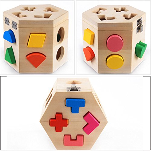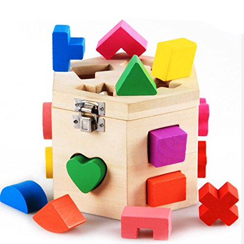 Feature : high-quality Wooden Material. Perfectly sized for toddlers' hands. / Each shape fits through a hole of the same shape on the wooden cube. / Classic learning activity with nostalgic appeal. / Promotes color and shape recognition and problem-solving skills. / Help To Develop Kid's Intelligence,Greatly help to develop children's intelligence and trains users brain and hands