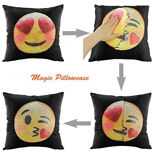 Studio : SNUG STAR Publisher : SNUG STAR Product Description SNUG STAR devote ourselves to creating fashion and practical products, with high quality and good service providing a good experience for the customers. If you have any problem,you can contact our customer service,we support return and exchange items. SNUG STAR Changeable Face Emoji Decorative Pillow Case Throw Cushion Covers for Sofa ,Home Decor Parameter: Material: cotton and 10% sequins Size: 40CM * 40CM/16 * 16 inches Closure: Hidden Zip The pattern is on the only one side Package Content:1Pcs of Pillowcase (no inner) Features: Good Sliding Sequins Making the emoji Pillow Case is Easy to Changing Different Faces. Shining Satin Fabric Bring the Emoji Pillowcase More Cute And Beautiful. It's Comfortable and beautiful For Sofa,Car,Bed,Hotel and Home Decoration. Note: 1.There may be some color differences due to lighting and different monitors 2.Please allow 1-2cm size error because of manual measurement. 3.Please hand wash. Reminder: when you buy a pillow cover, don't use the same size pillow insert; that will usually end up looking limp and sad. Size up!