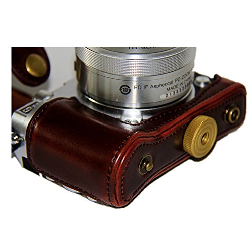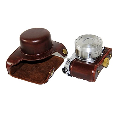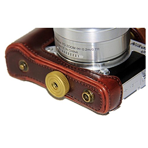 -. Title : kinokoo Nikon J5 カメラケース カメラバッグ PUレザー 三脚穴付き ショルダーストラップ 標識クロス付き