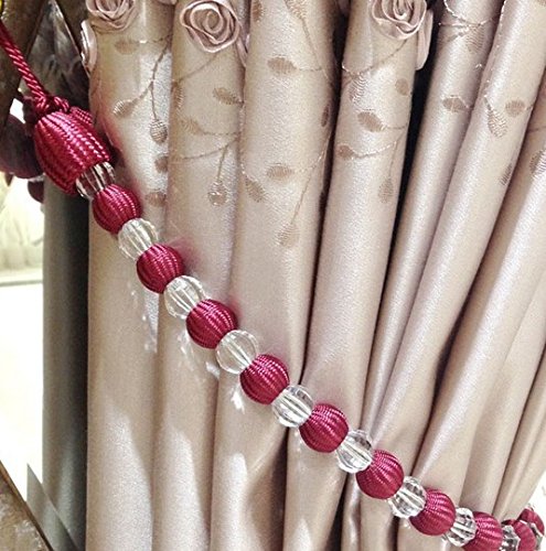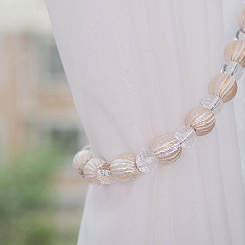 EleCharm 1 Pair Modern Acrylic Beaded Drape Curtain Tieback Curtain Beads Rope (White)