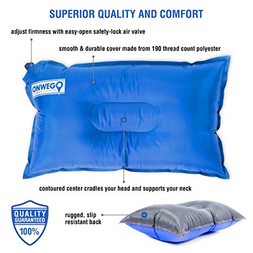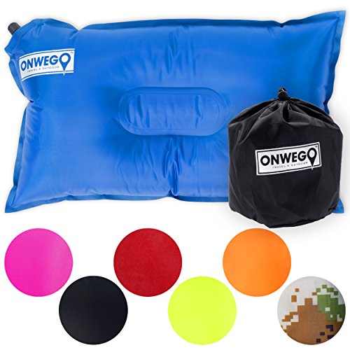 Camping Pillow / Inflatable Air Pillow-- 20in x 12in, 10.5oz, Self Inflating, Compressible-- Best for Outdoor Trips, Backpacking, Hiking, Beach, Travel, Motorcycle, Car -- By ONWEGO