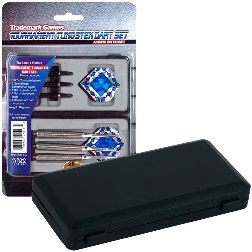 - Feature : 3 Tungsten barrels with machined grooved grip / 1 set of 3 high performance flights / 1 set of polycarbonate shafts / 1 set of aluminum shafts, 1 Deluxe slim hard carry case / Weight: 26 grams without shaft/flight, 28 grams with shaft/flight / Not Recommended for Children, Retail Ready packaging, Brand: Trademark Games