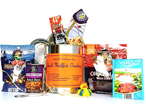 -. Title : STUD MUFFIN COWBOY WITH TEXAS BANDANA PRESENTED TO YOU BY COOKIE GIFT CAN QUEEN