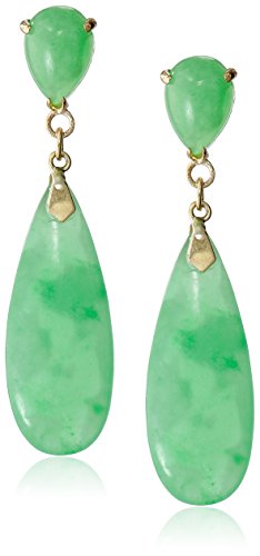 -. Title : 14k Yellow Gold Green Jade Teardrop Earrings