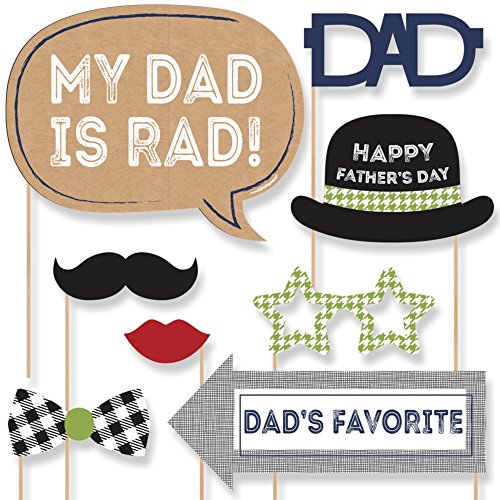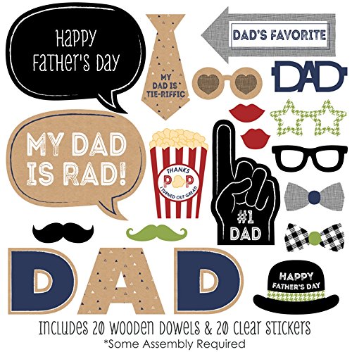 20-Piece Father's Day Photo Booth Props Kit INCLUDES 20 My Dad is Rad photo booth props, 20 wooden dowel sticks and adhesives for assembly. EASY ASSEMBLY: Simply attach the printed DIY photo booth props to the wooden dowels with included adhesive and reinforcing stickers.