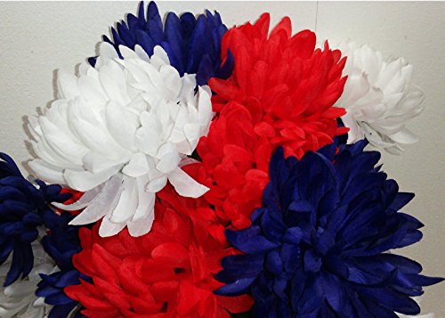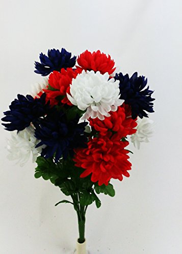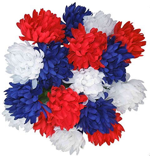 Admired By Nature 2 Piece 18 Stem Artificial Mum Bush, Red/White/Blue
