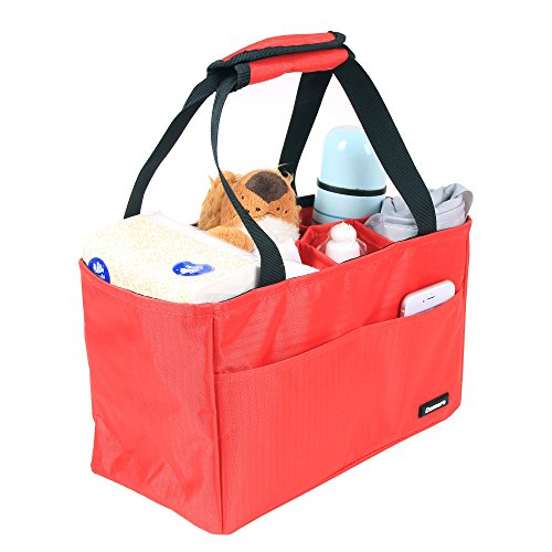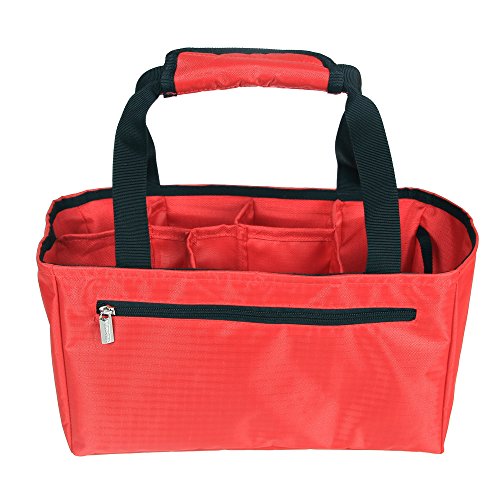 Damero Insert Organizer (Sewn to the Bottom) for Women's Handbag / Purse / Diaper Bag / Backpack with Handles (Red)