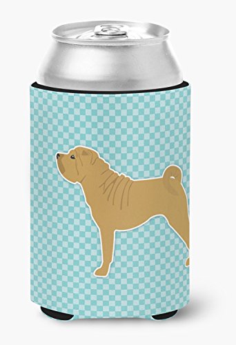 Caroline's Treasures Shar Pei Checkerboard Blue Can or Bottle Hugger BB3752CC, Can Hugger, Multicolor