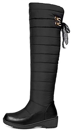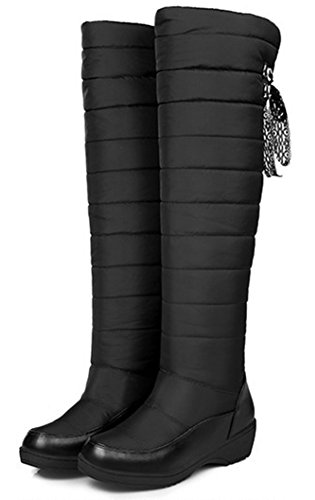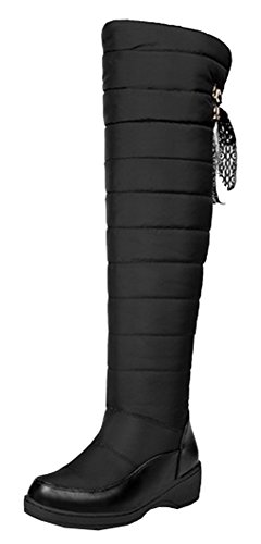 Binding : Apparel Product Description This pair of shoes is for women, girls, young ladies and brides. You will look sexy and elegant when wearing them. The heels measure 1.8 inches. You will feel comfy in their mid heels. This pair of shoes features knee high and solid waterproof upper. You will look stylish in their simpleness. The design of round toe and human-made materials will make you more sexy. The pull on is easy for get on and off. You could wear them with jeans, dress and skirts. The sole is made of good rubber. It's really lovely and comfortable. 0