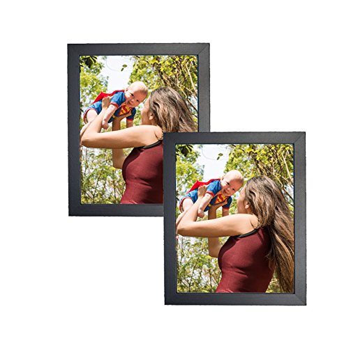 MDF Wood Picture Frames 8x10 Display with PVC Lens, Easel Back, Hanging Clip | 2 PIECE SET (Black, 8x10)