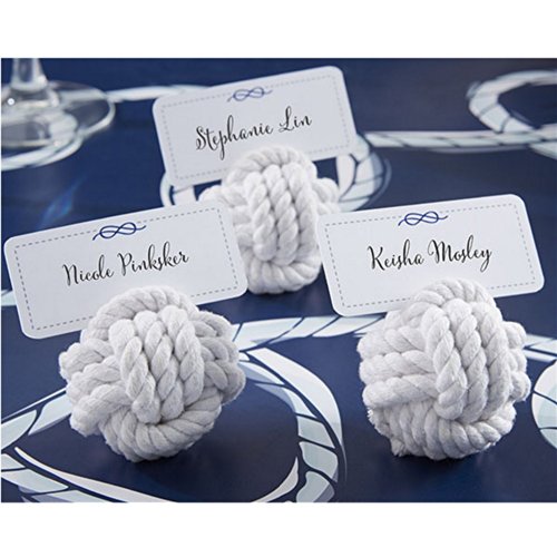 Simply sublime when you're tying the knot. Don't you love this pure, natural cotton knot place card holder as an organic element for your table? Aye, aye, Captain! We tied a monkey's fist knot, traditionally used by sailors because it holds its shape, has some weight to it and doesn't roll. Natural cotton rope.
