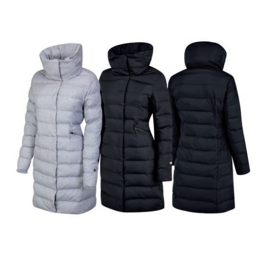 여성 롱기장 패딩넥라인이 넓어 목을 감싸주는 패딩 앞라인 지퍼 디테일 겨드랑이 부분 트레이닝 소재로 캐쥬얼한 느낌으로 착용할 수있는 패딩자켓