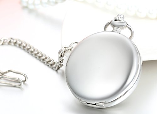 JewelryWe 회중 시계 앤틱풍 태엽식 목걸이 시계,펜던트 워치 포켓 워치,멋진 영숫자 문자판,경면 풀 헌터 심플 실버,합금,발렌타인