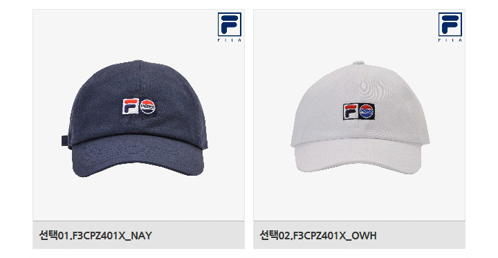 FILA X PEPSI 공용 볼캡 로고자수를 적용하여 심플한 스타일로 코디 용이 원터치 버클을 적용하여 다양한 사이즈 조절 가능 쿨맥스 소재 땀받이 적용하여 흡한속건 기능 우수