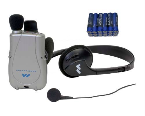 -. Feature : Includes PockeTalker Ultra w/ microphone, 12 ft TV listening cord, headphones, dual mini earbuds, Users Guide, 5 year manufacturer warranty / 20-40 dB acoustic gain, 2 ft. TV listening cord Up to 100-hours of battery life / External volume & tone controls, Removable microphone with extension cord, Removable integrated belt clip / Operates on two AAA batteries 5 year manufacturer warranty, FREE Year Supply of Batteries