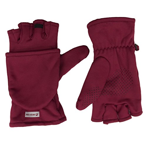 These cozy beet red performance fleece fingerless gloves have attached magnetic closure mitten toppers to keep you warm when you don't need to use your fingers. - Women's sizes