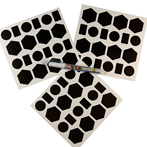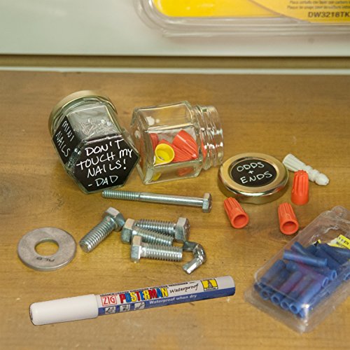 Cohas Chalkboard Labels for Mini 1.5 Ounce Hexagon Spice Jars includes Liquid Chalk Marker and 60 Labels, Small Round, Rectangle, and Hexagon, Extra Fine Tip White Marker