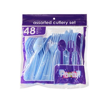 Plastic Utensils, 48-ct. Packs (16 Forks, 16 Spoons & 16 Knives) (Light Blue, Plastic Utensils 48 Ct. Packs)