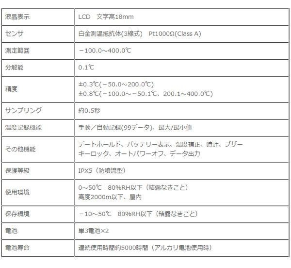 水まわりや湿度、油などの多い環境でも安心して使用できる温度計です。わかりやすい大型液晶表示で、作業でのストレスを軽減します♪PCへのデータ通信可能です。 |