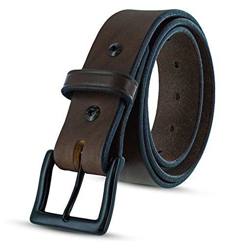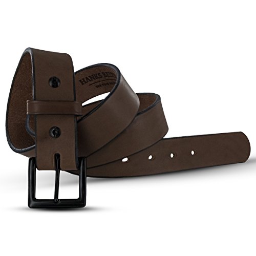 -. Feature : Heavy-Duty Leather Belt: Specially designed for bigger guys, our Grande big and tall jeans belt features 6 oval holes spaced 1" apart! It offers a great fit without sacrificing style, making it the perfect go-to for shorts, jeans and your typical weekend wardrobe. / Designed for Versatility: We gave our casual belt a bit of polish thanks to an black buckle! It puts the finishing touch on any outfit, but because it features Chicago screw construction, you can easily swap it out to make repairs and replacements. / Quality Comfort: At Hanks, we believe the man should wear the belt - not the other way around. While cheap materials are stiff and bulky, our full-grain leather belts will break in as you wear them, making them soft, pliable and surprisingly comfortable! / Made in the USA: Big and tall clothing might provide a comfortable fit, but it rarely delivers the durability a hardworking man needs. With 13oz full-grain steer hide, our big belts for men are strong, reliable and guaranteed not to crack, split or break! / Shop Risk Free: These days, it seems like fewer and fewer brands are willing to stand behind their products. But at Hanks, we do things a little differently. Our leather belts for men come complete with a 100-year warranty, ensuring a lifetime of satisfaction, even our large size belts!