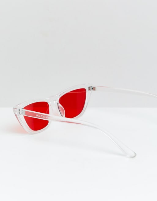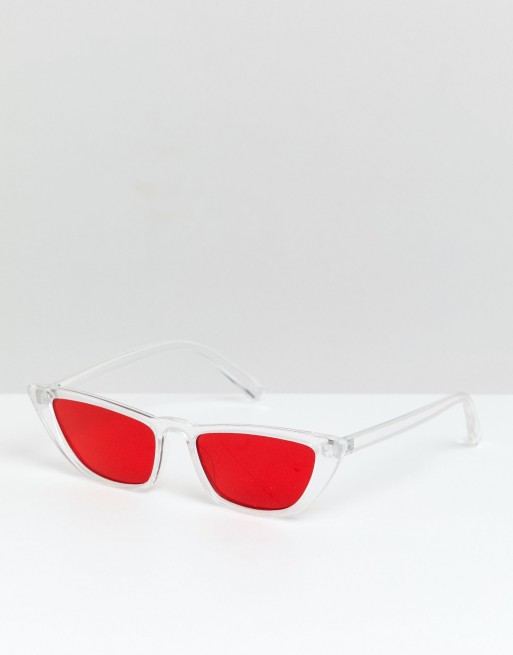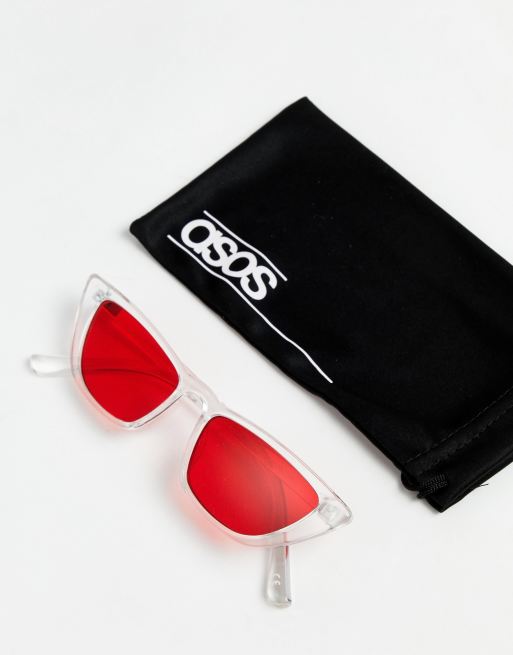 ASOS DESIGN angled cat eye sunglass in clear with red lens