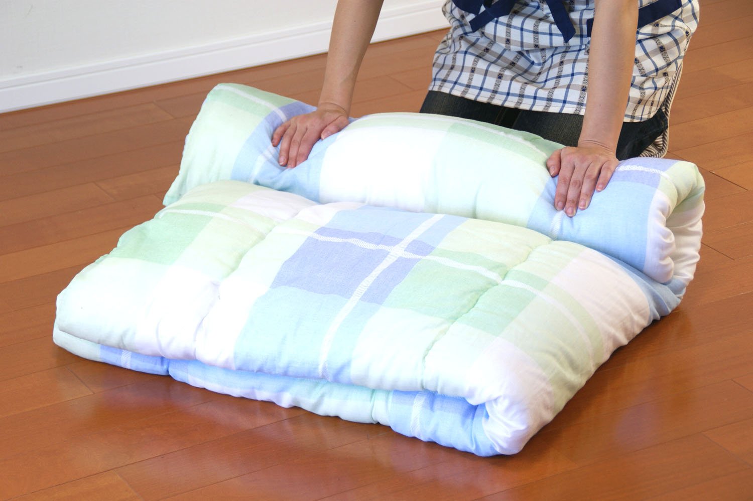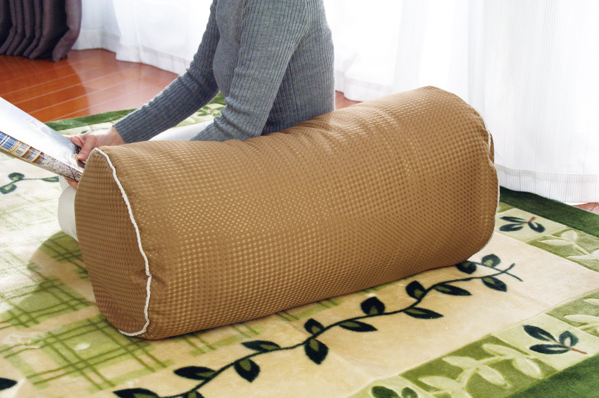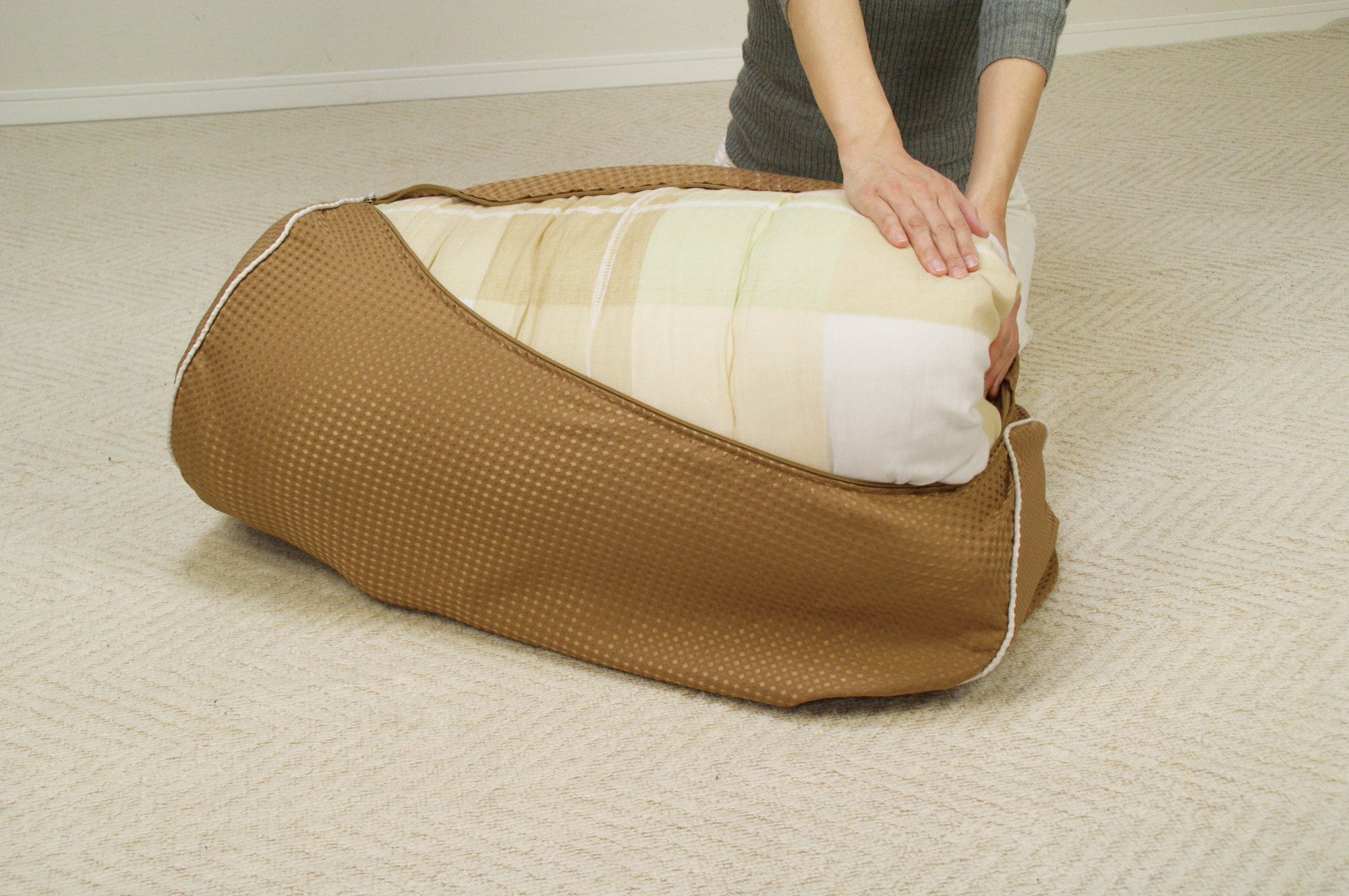 "Futon de Cushion" can be used as a cushion by spreading a futon in a special storage bag! Usage is simple.