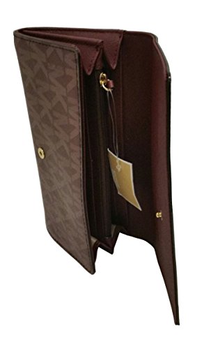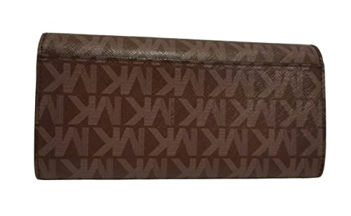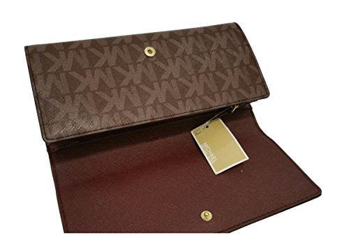 Binding : Apparel Product Description This gem is wrapped in dual tone monogram printed PVC with polished golden tone hardware. This flap style carryall wallet is accented with Michael Kors logo on the front and there is an open slip pocket on the back. The saffiano finished leather and custom logo fabric interior features (10) card slots, a zippered coin compartment and several full length bill compartments. It measures approximately 7.75" (L) x 3.55" (H) x 1" (W) and has an MSRP of $178.00. 0