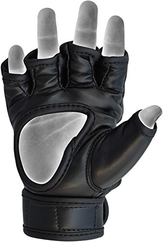 -. Feature : Maya Hide leather armours these junior MMA gloves for long life and unbreakable resiliency / Tri-Slab triple layer padding for maximum shock-absorption of the nastiest of impacts / QD-1 lining with moisture wicking lining keeps young hands dry, comfy and reduces moisture build-up / D.Cut palm architecture with thumb sheathe for better grip and enhanced breathability / Quick-EZ Velcro closure to provide the perfect fit; comfy and snug, while providing wrist support