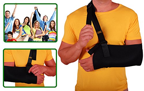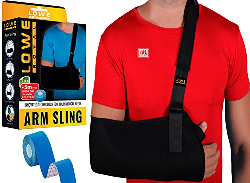 Lowe Royal is offering this tested and proven sling for comfort which is lightweight and breathable with a padded strap. Toss those cheap with no support slings away and make sure to give our innovated technology sling a try. Benefits: ? Provides extreme arm and shoulder support ? Stands up to rigorous daily wear and tear ? Self-adjust with one hand ? Stylish enough to wear out and about ? Wicks moisture and vents the heat ? We also include a bonus roll of water-resistant muscle tape for a better recovery ? Love the sling or your money back. We are confident that you will love your arm sling but if you are not satisfied, our products are always backed by 100% Money Back No Questions Asked Guaranteed!