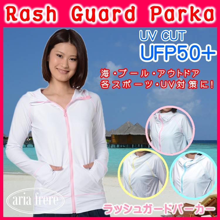 プールや海水浴、あらゆるスポーツにオールシーズンのUV対策に使えるラッシュガードパーカーです♪