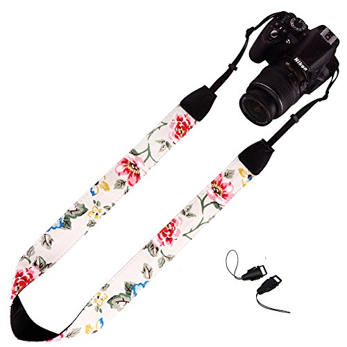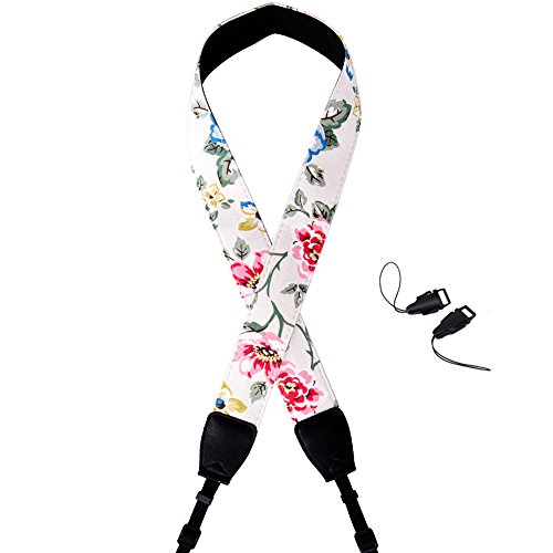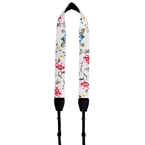 Camera Neck Shoulder Strap Belt for DSLR / DC / Fujifilm Instax Mini 9 / Mini 8 / 8+ / Mini 7s / Mini 25 / Mini 50s / Mini 90 / Wide 300 / Pringo 231 / Instax SP 1 / Polaroid PIC-300P - White Floral