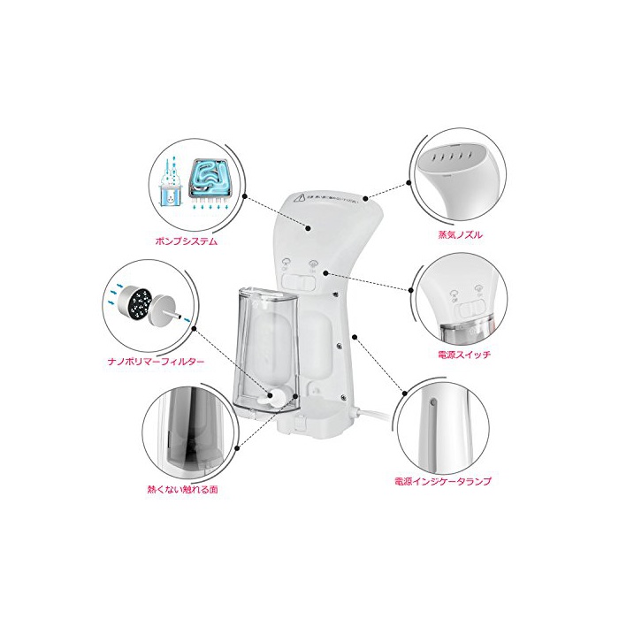 사용 시간:핸디 스티머(Steamer)는 펌프 시스템의 설계에 100ml의 대용량에,한 번 급수하면 steam이 10분간,나오는 것을 계속합니다.매일의 다림질이 더 간단 입니다.세균의 번식을 피하기 때문에,사용한 후의 나머지의 수는 버려 하십시오.