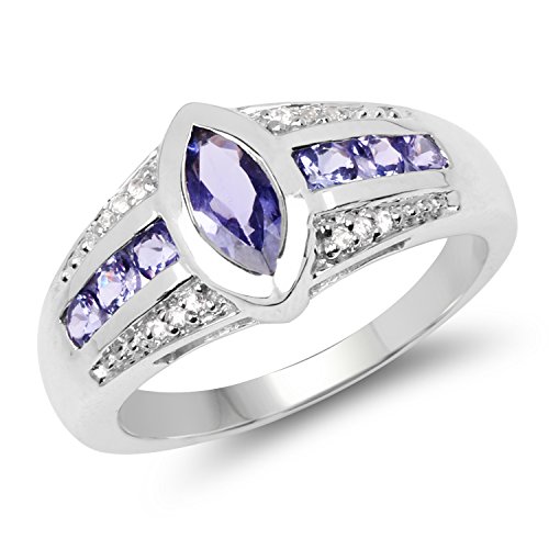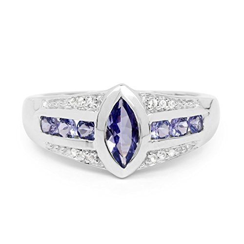 -. Title : 1.20 Carat Genuine Tanzanite & White Topaz .925 Sterling Silver Ring