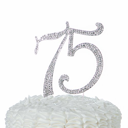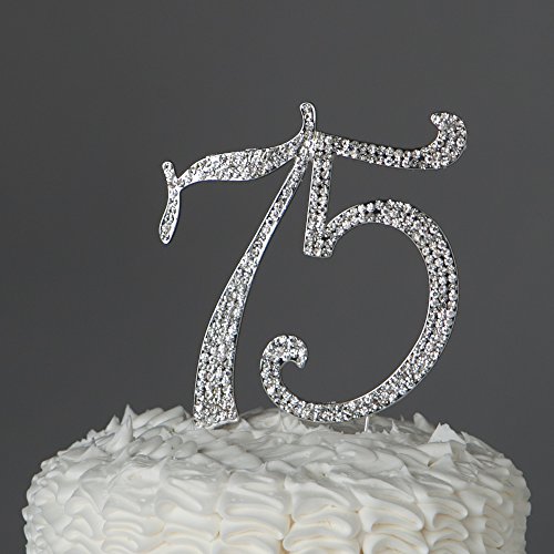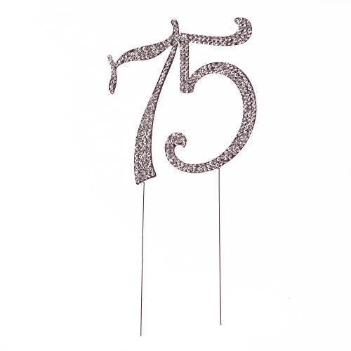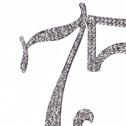 Product Description Get the Best for the Best: With such a momentous occasion, it's worth the splurge. With its sparkles and metal setting, this piece makes the perfect dessert top for those celebrating their 75th and will certainly make a statement! Quality Is Worth It: With so many plastic gimmicks and candles on the market, this high quality metal-alloy piece truly provides grace to an already beautiful dessert. Customize the Height: Whether it's a sheet-cake or multi-tiered design, this piece will fit atop any type of dessert. The prongs can easily be snipped down to the appropriate height so that the number rests right on top without anything showing below. Make a Statement: The big 7-5 is a big deal, and this large 5 inch tall piece will make it clear that it's time to party. Anadir elegancia a su partido : Con un brillo especial y el estilo que llame la atencion , esta pieza elevara cualquier postre. 0