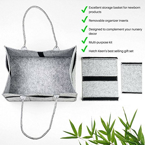Hatch Keen ? Baby Diaper Caddy: Makes Your Diaper Changing Time, a Happy Time! Organize your diaper changing table and nursery storage with this highly versatile diaper caddy and diaper storage organiser from Hatch Keen. We know how stressful it can be while searching for all the baby products you need during your baby’s diaper change. On the other hand, other diaper stackers do not provide enough space for more items you may need like an emergency change of clothes, wipe cloth etc. Our nursery caddy will simplify your life with all things available at one place. Forget the stressful times and get Hatch Keen’s smartly crafted Diaper Caddy Organizer Set, today! Stylish and Lightweight: Made with 100% Polyester Felt (Grey), our changing table organizer is not only super lightweight which can be carried around the house but also super stylish to match any environment. Add style to your nursery decor with this elegant, durable and stylish nursery storage caddy basket. More Versatile for your daily needs: Organize your house with this multipurpose diaper storage Caddy. Use it for baby organization, organize things in your car, bathroom, or use as your growing kid’s storage basket for books, shoes, clothes, pet supplies, craft supplies, etc. The more versatile your needs the more versatile is the caddy. Make it into a portable diaper changing kit that comes in handy anytime throughout the day or at night or during your travel times in the car. ‘Add to Cart’ our baby diaper caddy now to begin organizing your diaper changing times and bid goodbye to stress and say hello to happy moment! 0 |