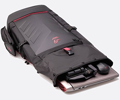 -. Binding : Electronics -. Brand : EXCaliberPC -. Color : Black -. EAN : 0757480710713 -. Feature : Roll top design increases internal capacity to 42L if required / Built-in rain cover with the ROG logo for wet weather use / Ergonomically-designed wide shoulder straps and soft ventilated back panel / Removable side pocket and storage panel for smaller items and accessories / Fits up to 17-inch notebooks -. Label : ASUS -. Manufacturer : ASUS -. PackageQuantity : 1 -. ProductGroup : PC Accessory -. ProductTypeName : CARRYING_CASE_OR_BAG -. Publisher : ASUS -. Studio : ASUS -. Title : ASUS Republic of Gamers Ranger Backpack -. UPC : 757480710713