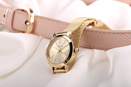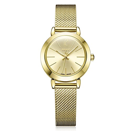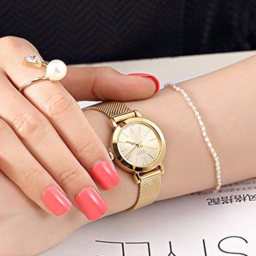 골드 초박형 케이스,심플하고 골드 다이얼과 골드 스테인레스 밴드는,팔을 더 깨끗함으로 보게 합니다.간단 조작 배치 잠그개에,손목의 길이에 따라,밴드의 길이를 조정하기 쉽다.