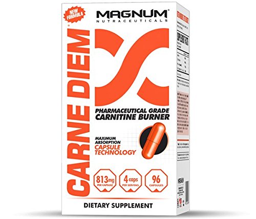 -. Feature : MAXIMIZES THE UPTAKE OF L-CARNITINE INTO MUSCLE TISSUE - Carne Diem the world's most effective L-Carnitine based fat burner. This prodcut succeeds where current L-Carnitine products have failed / REDUCES THE HIGH URINARY EXCRETION OF L-CARNITINE - Magnum's Carne Diem has unlocked the powers of L-Carnitine and solved the low absorbability, transport, and retention issues that have plagued all other L-Carnitine-based products / FORCES YOUR MUSCLES TO FAVOR FATTY ACID OXIDATION AS FUEL - Carne Diem allows your body to transport fat the your muscle cells' mitochondria for use as energy without the need for an insulin spike, unlike other L-Carnitine based products. That means you can stay in a fat burning zone as opposed to a fuel storage zone, which is what happens when the body releases insulin / PRESERVES GLYCOGEN FOR ENHANCED PUMP WHILE GETTING LEAN - Carne Diem secondary ingredients also force your body to choose fat as fuel source over glycogen, which keeps your muscles full and pumped, even while on a low-calorie diet / STACKS WELL WITH; Magnum After Burner, Drip Dry, Acid, Heat Accelerated & Big C