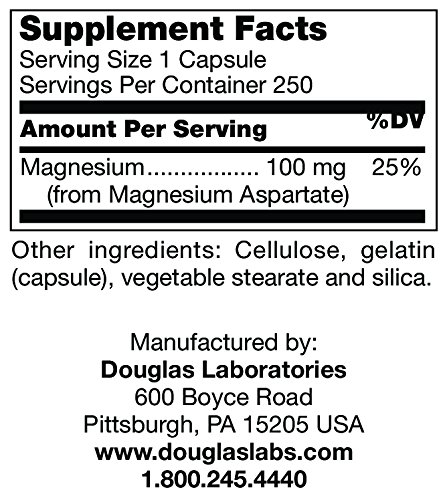 Magnesium Aspartate capsules, as provided by Douglas Laboratories®, deliver 100 mg of elemental magnesium in their bioavailable aspartate forms.