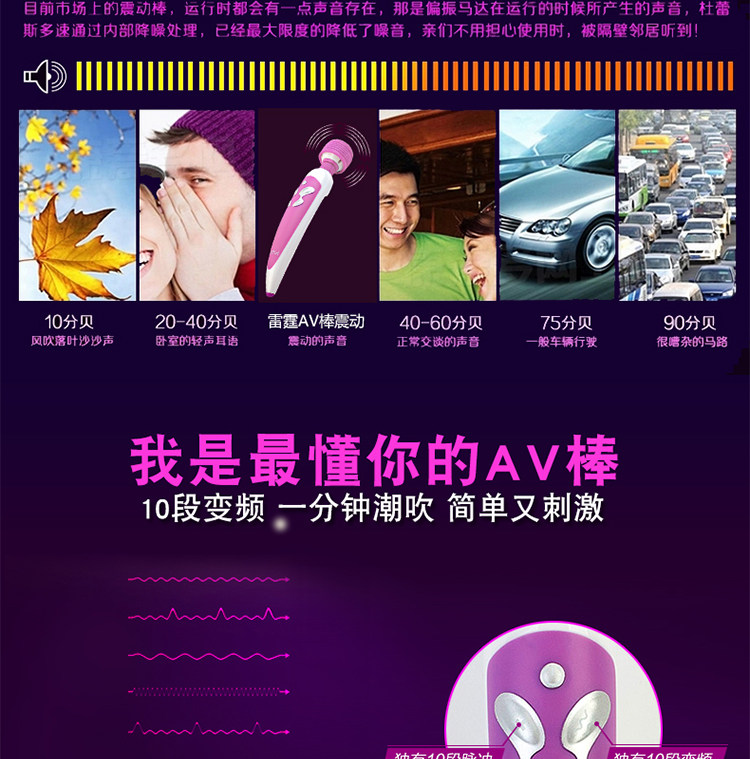 雷霆AV棒可充电震动棒按摩棒女性自慰器中号情趣成人用品女用高潮