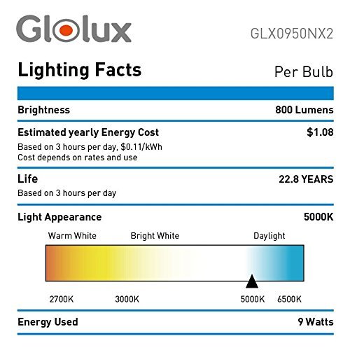 Glolux A19 LED Light Bulb, 60 Watt Equivalent, E26 Base Daylight 9 Watt Pack of 6