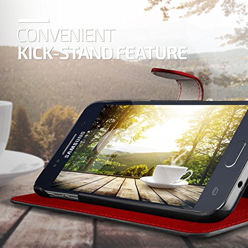 Galaxy Note 5 Case, Lific [Saffiano Diary][Black/Red] - [Leather Wallet][Card Slot][Kickstand] For Samsung Note 5