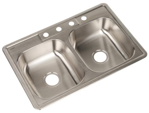 Houzer A3322-65BS4-1 ADA Glowtone Series Topmount Stainless Steel 4-hole 50/50 Double Bowl Kitchen Sink