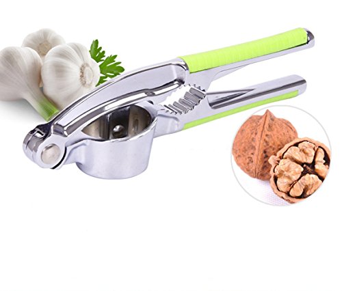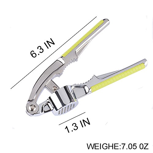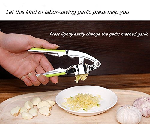 Garlic Press, Stainless Steel Kitchen Garlic Press, Professional Heavy Soft-Handled Garlic Press Crush Garlic Mincer and Silicone Tube Roller - Green